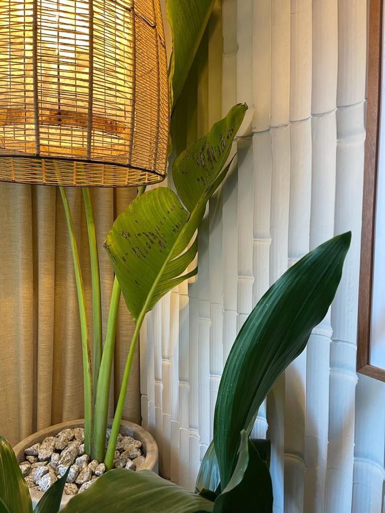 Desenvolvida pela designer de interiores Camila Oliveira, Bamboo é uma peça que surpreende pelos sentidos. Inspirada na leveza natural dos bambus, sua superfície revela o negativo dessas hastes orgânicas, criando uma textura sutil e profundamente tátil — quase como um vestígio da natureza cravado no cimento.