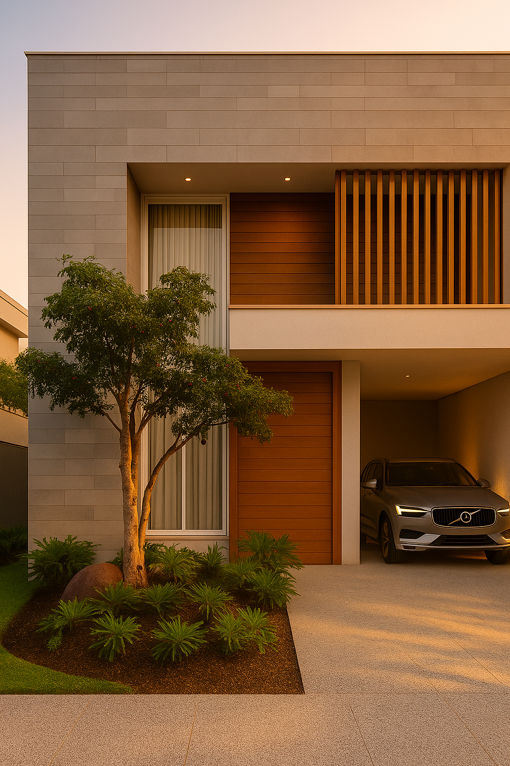 Este revestimento cimentício traz a aparência marcante das ripas de concreto, com uma textura que remete à madeira, criando superfícies cheias de naturalidade, elegância e profundidade. Feito com materiais especiais e acabamento artesanal, ele une resistência, beleza e expressão.