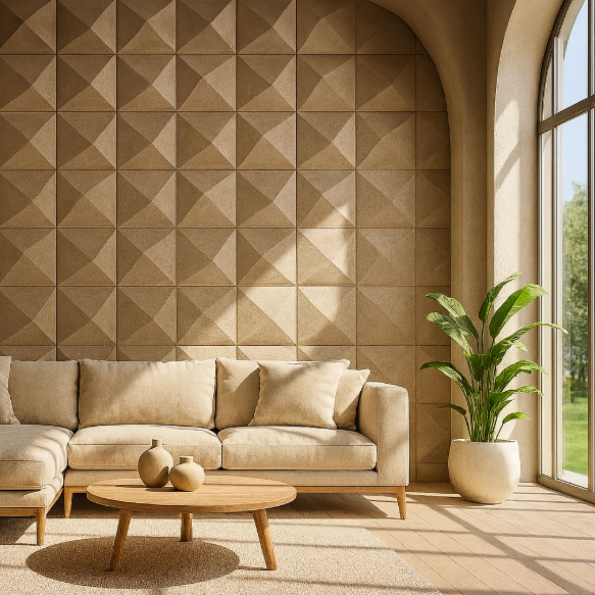 Com formas geométricas precisas e um toque artesanal singular, esta peça transcende o conceito de revestimento e transforma paredes em verdadeiras obras de arte.
