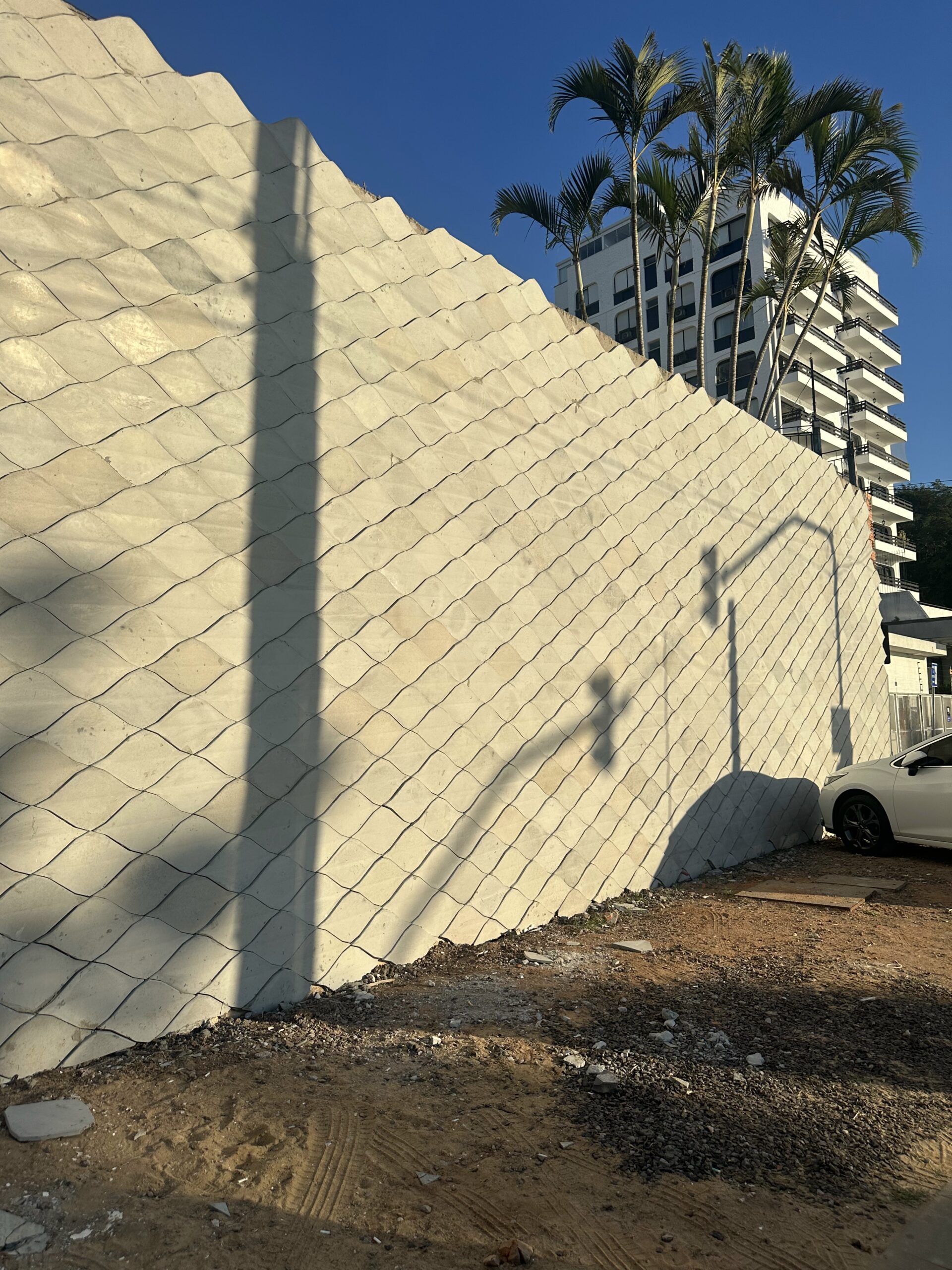 O revestimento Onda, criado pelo arquiteto Felipe Loposzinski, nasceu da contemplação do movimento vivo e hipnótico do Rio Guaíba. Suas curvas fluidas e ritmadas resgatam o balanço sereno das águas, traduzido em concreto por meio de um desenho autoral e sensorial.