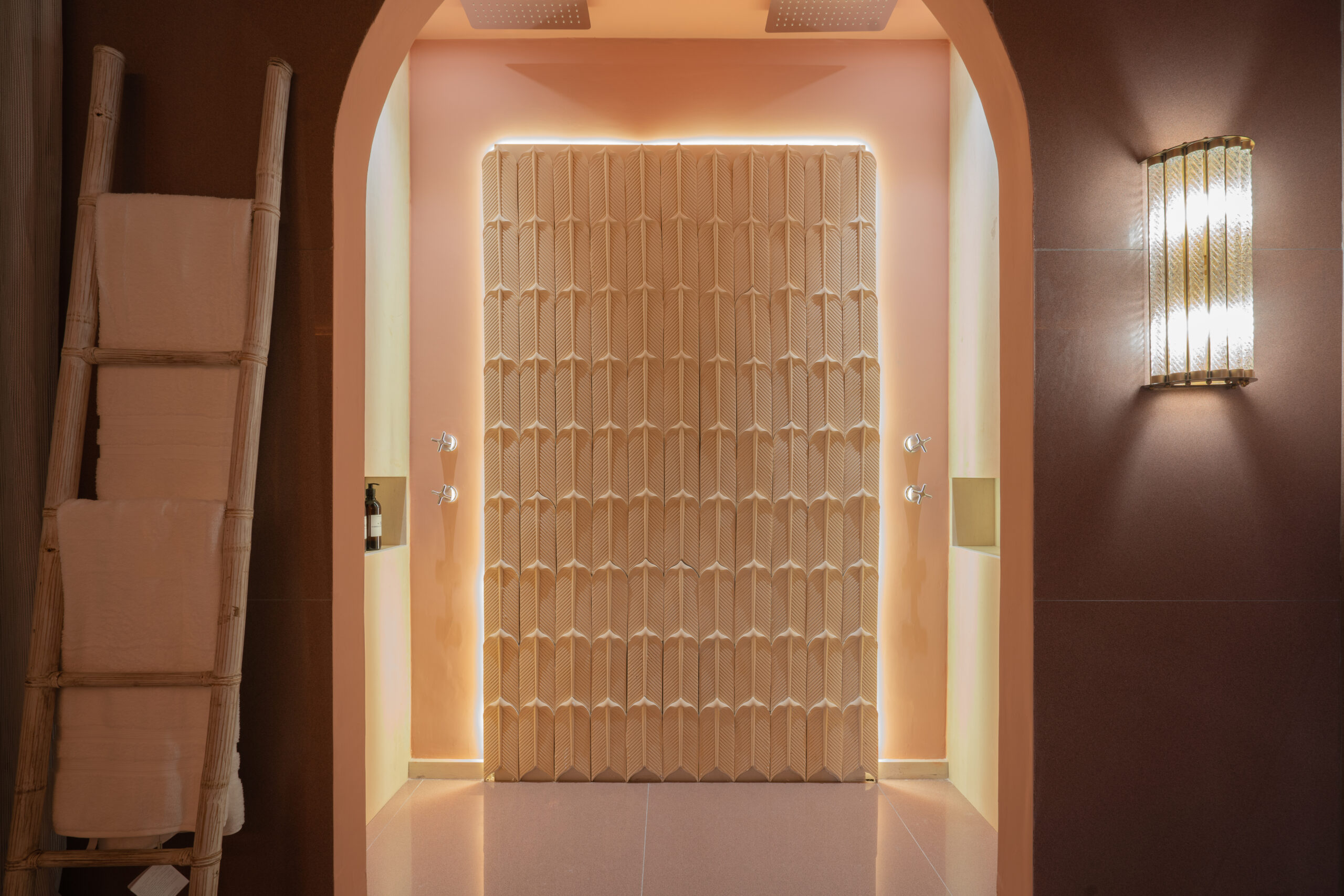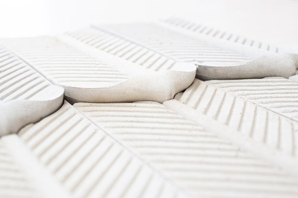 Mais do que um revestimento, Pena é uma escultura em forma de peça. Criada pelo designer Michel Keller, sua superfície côncava revela o contorno sutil de uma pena — símbolo sagrado na cultura Inca, onde o condor representa o elo entre o mundo terreno e o espiritual.