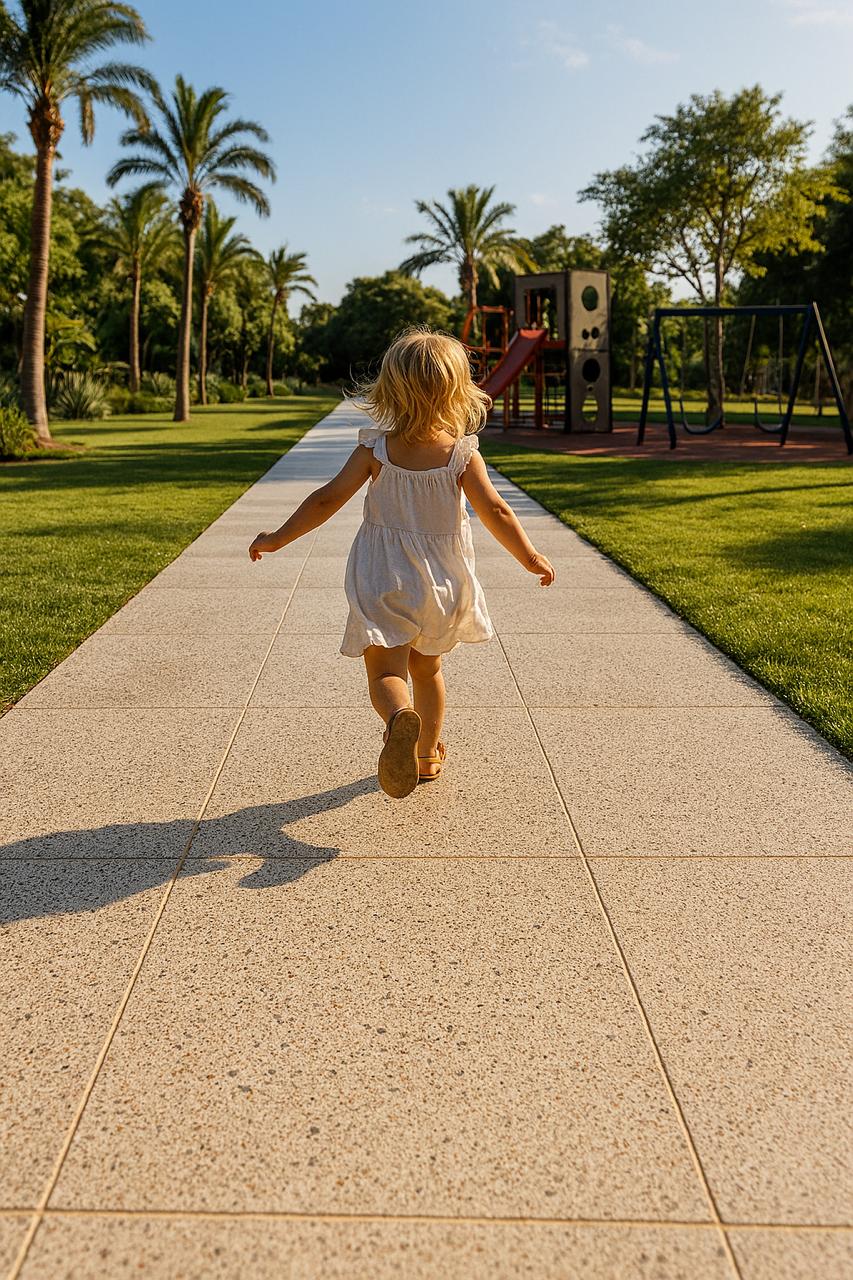 Mesmo expostos ao sol, os pisos atérmicos mantêm a superfície fresca ao toque. Isso significa que crianças podem brincar descalças, pets podem circular à vontade, e todos podem curtir o espaço com liberdade e segurança.